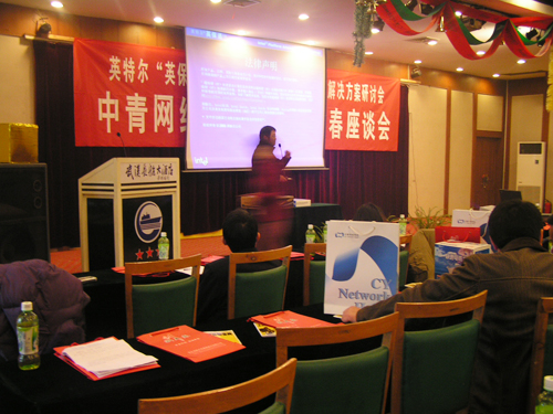 昨天,中青网络家园武汉有限公司和Intel公司在长航大酒店主办了“中青网络家园2006年迎春座谈会”,公司旗下100家网吧业主均到会参加。中青网络家园武汉有限公司总经理鲁静,市网吧协会会长周彰,Intel公司武汉办事处经理谭华涛,富士康全国网吧专案经理旺月明,金山公司华中区总监李新华均出席参加了本次会议,并在会上发言。
